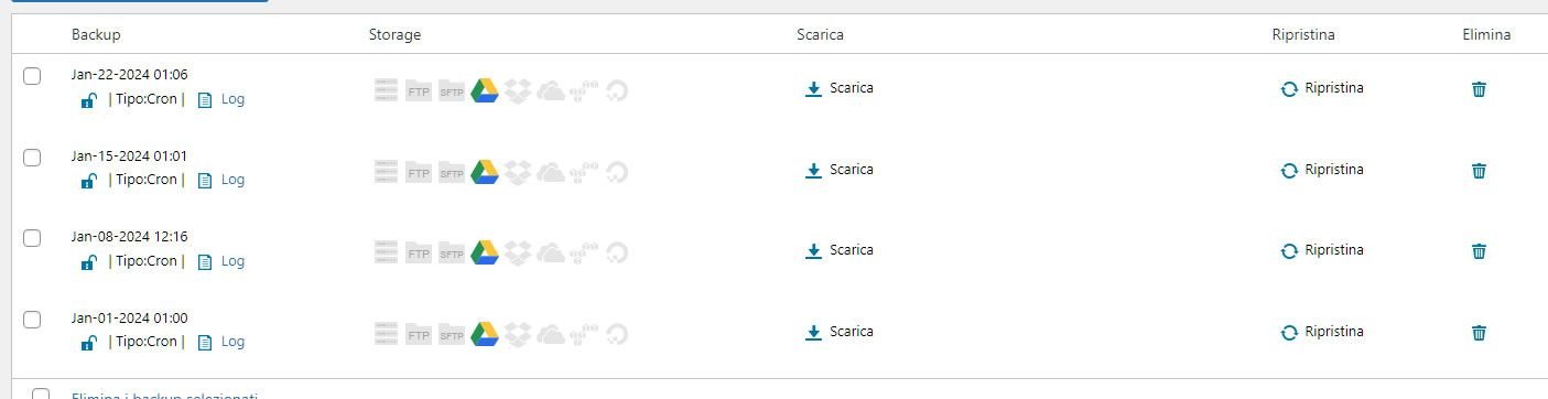 - Criteri di backup: Puoi scegliere quali elementi del tuo sito desideri includere nei backup.